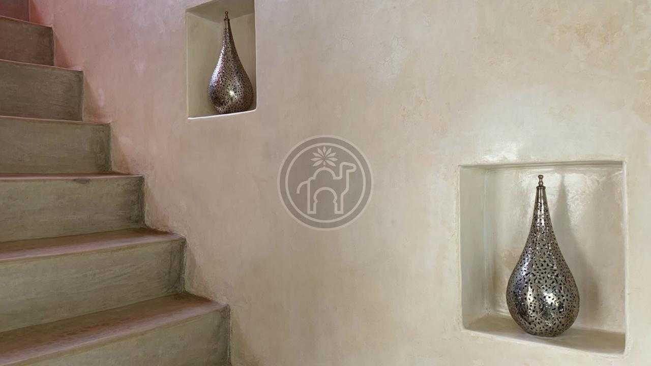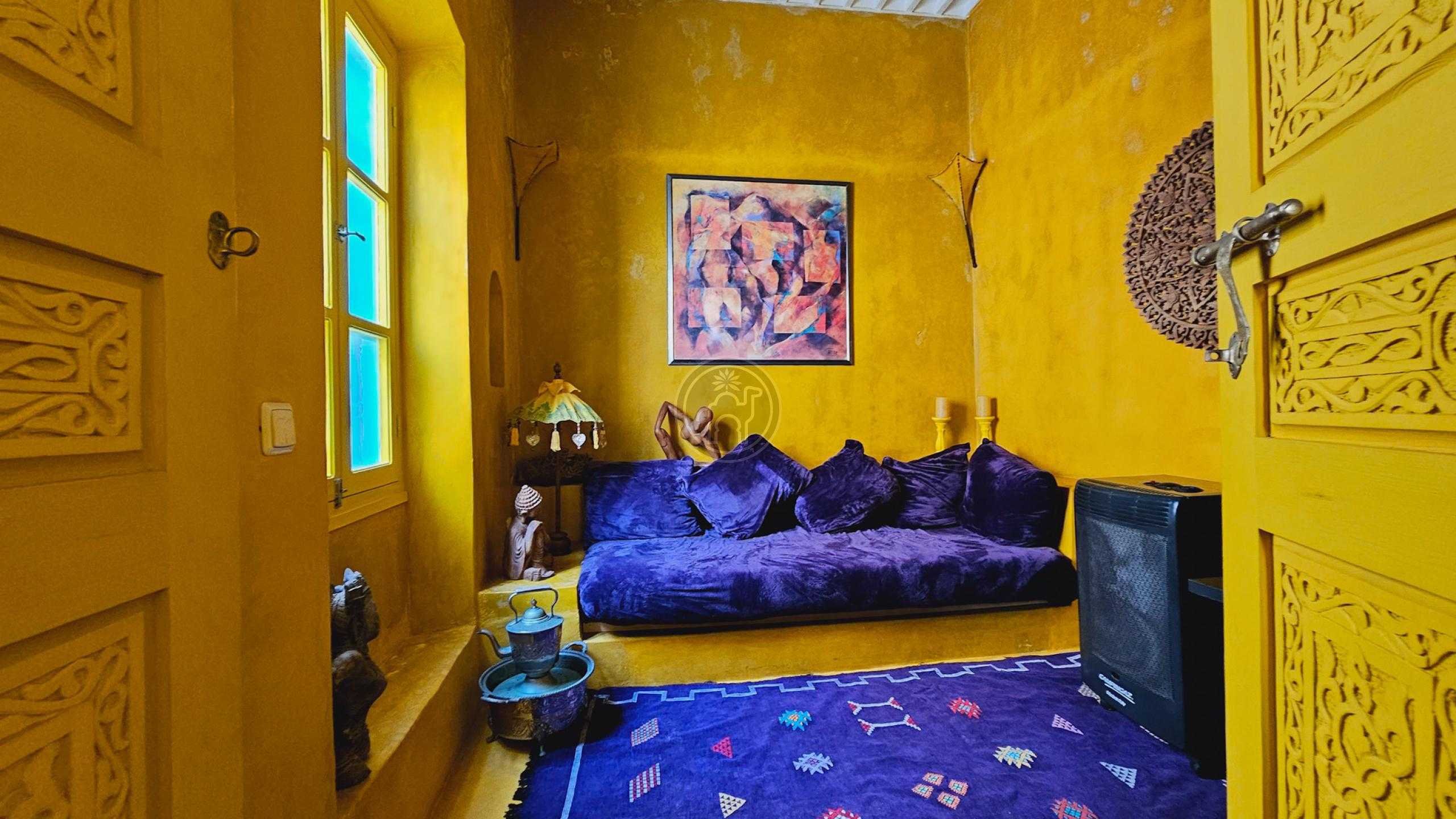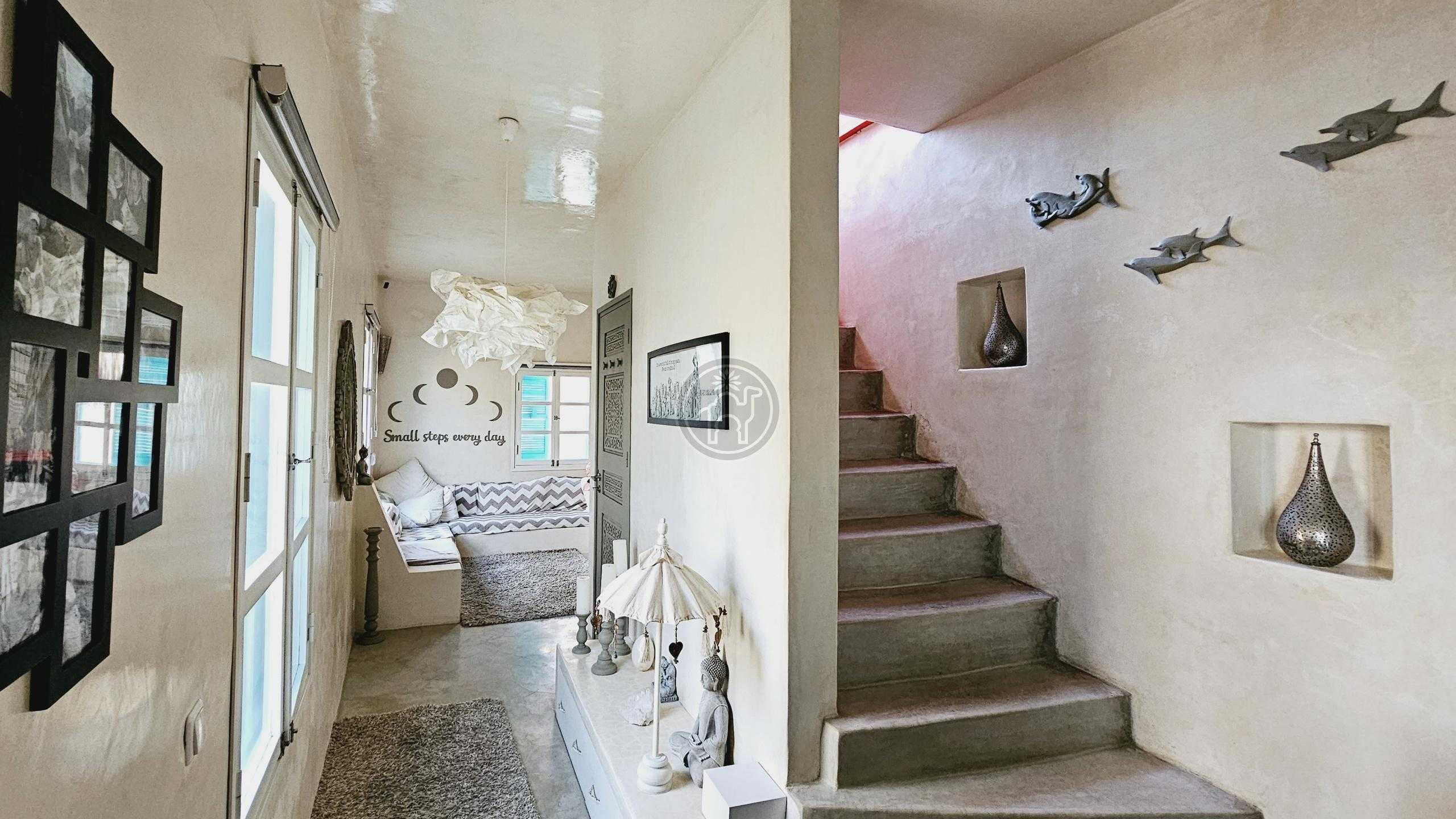 Située dans une ruelle calme de la médina, non loin des remparts cette petite maison de médina vous séduira dés la porte franchie, sur la ruelle deux belles portes ouvrent, une sur l’entrée d’où les escaliers démarrent pour desservir les quatre niveaux et l’autre sur un cagibis idéal pour stoker des vélos, des poussettes ou des objets encombrants.