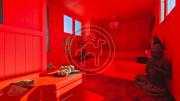 Au quatrième niveau un espace tout de rouge vêtu, décoré comme une cabine de bateau, abrite une chambre et une petite terrasse, la encore les rangements font leur office et contribue à rendre cette maison agréable au quotidien.