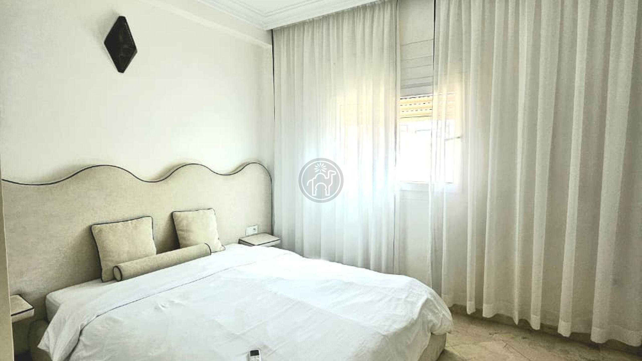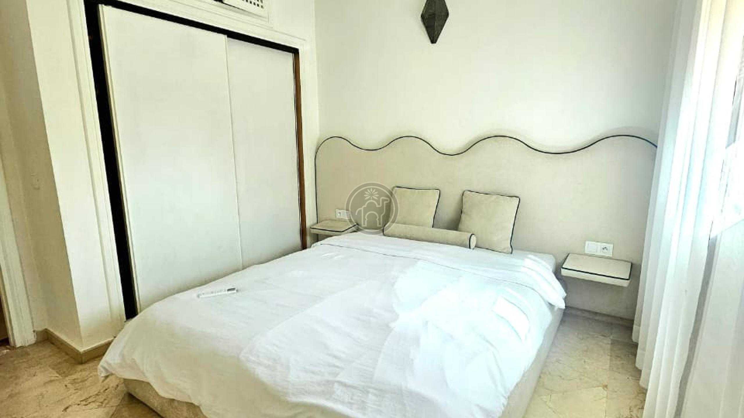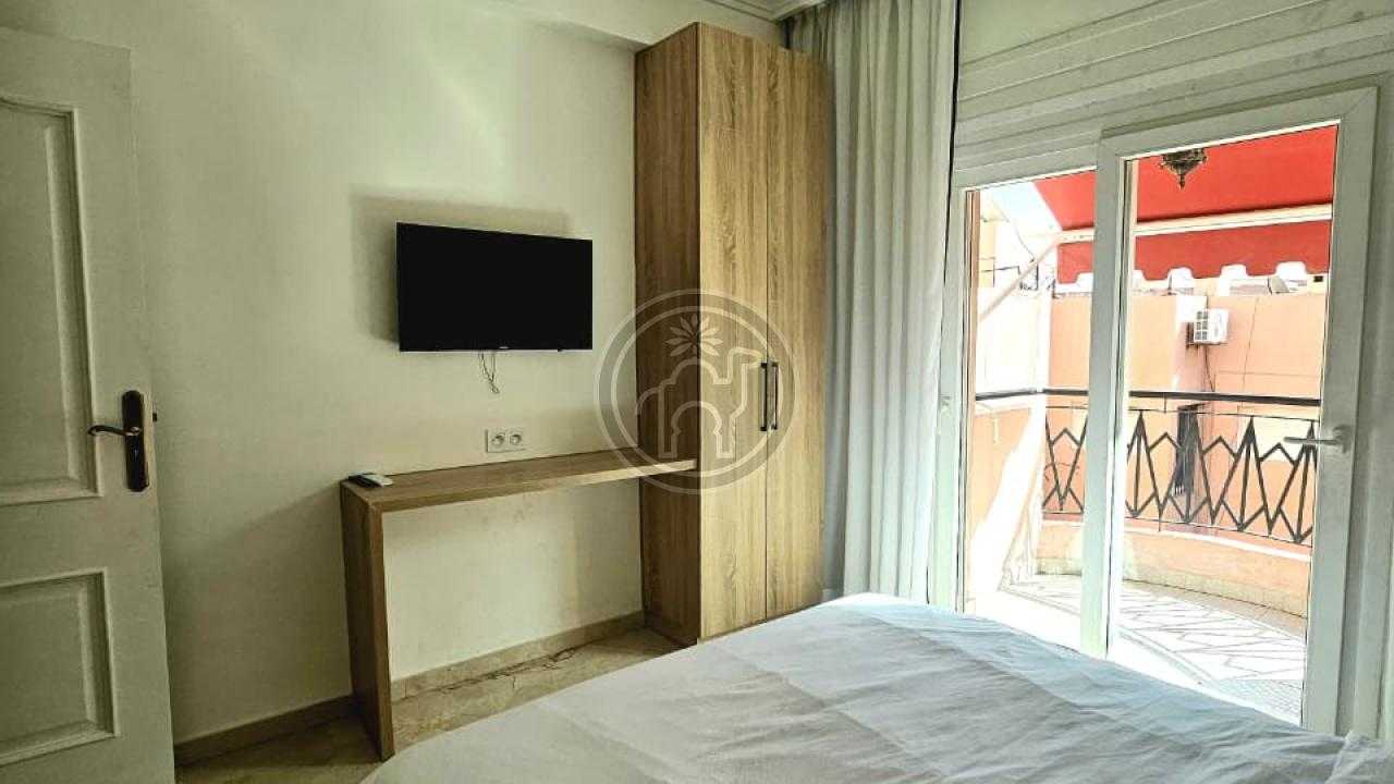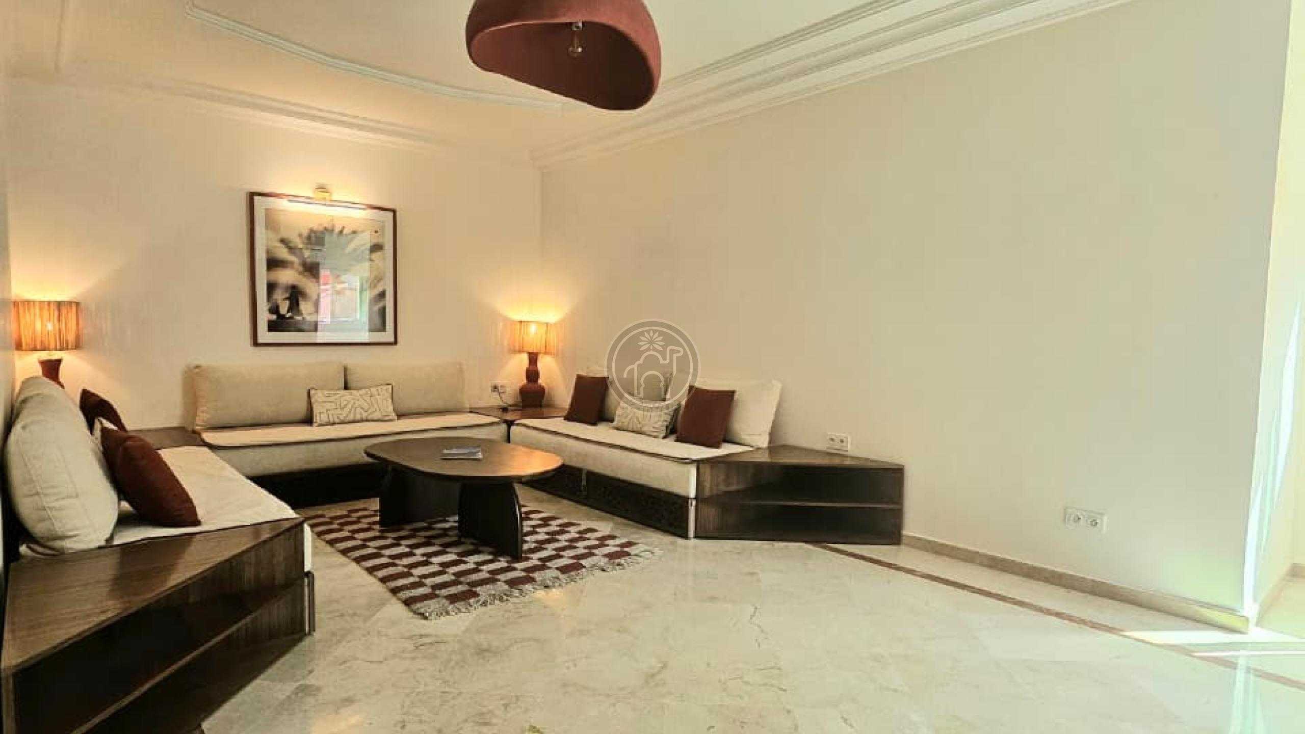 Jemaa El Fna Immobilier vous propose à la vente un superbe appartement titré de 105 m², situé à Guéliz, quartier Victor Hugo, au 5ème étage d’une résidence de standing avec ascenseur et place de parking. Cet appartement meublé, spacieux, très lumineux et en excellent état se compose de deux chambres dont une avec balcon, climatisation et télévision, d’un salon chaleureux avec cheminée et télévision, d’une cuisine moderne entièrement équipée (four, plaque, réfrigérateur, micro-ondes, lave-linge, chauffe-eau, etc.), ainsi qu’une salle de bain italienne et une toilette séparée. Les fenêtres à double vitrage assurent confort et tranquillité.