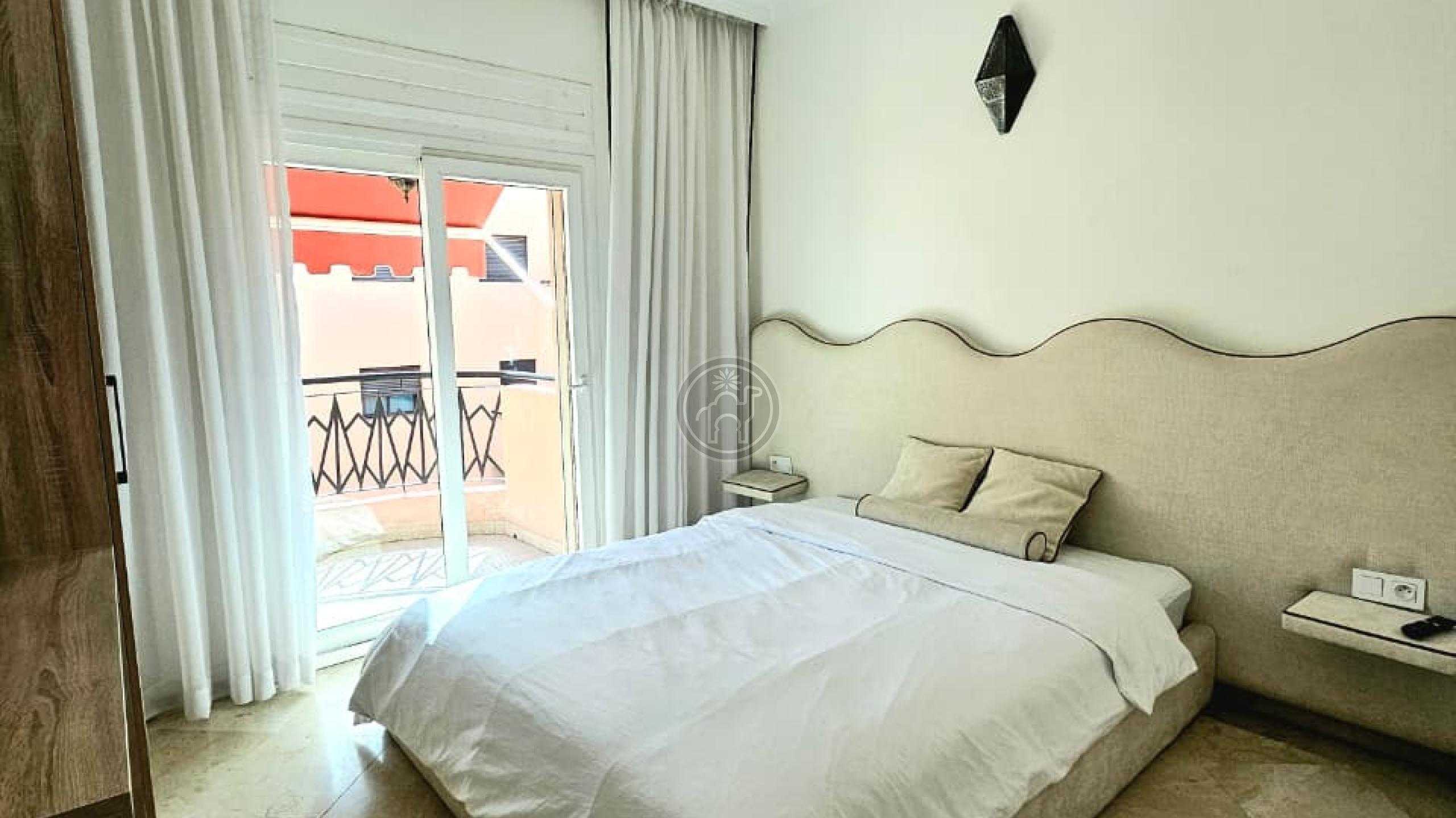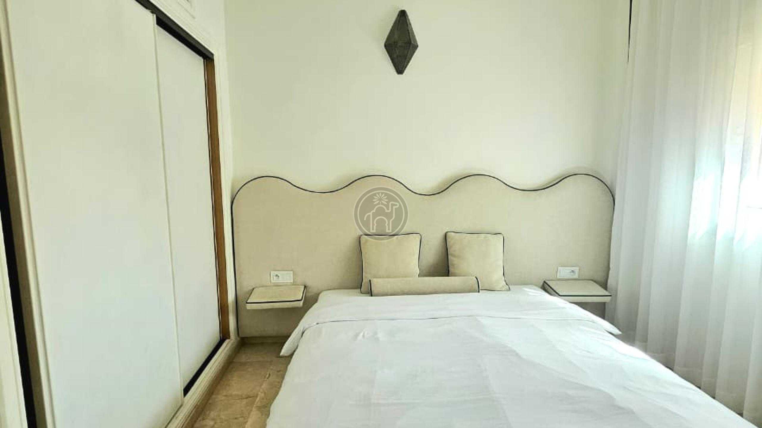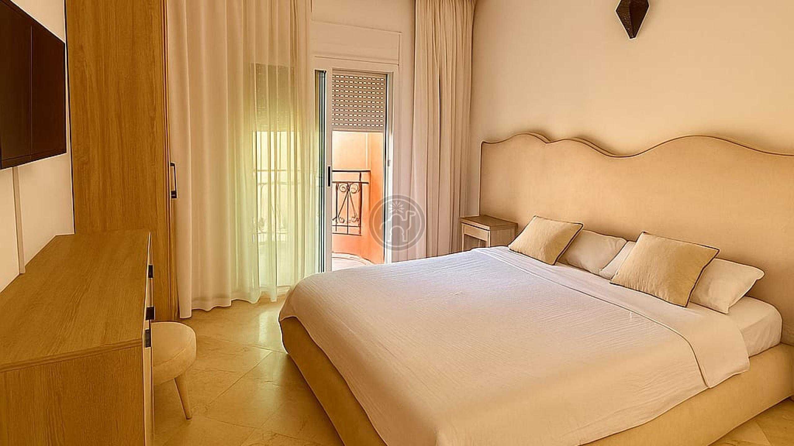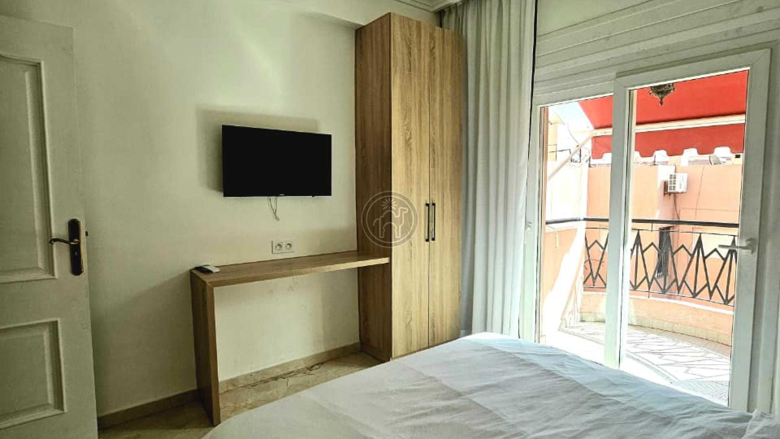 Jemaa El Fna Immobilier vous propose à la vente un superbe appartement titré de 105 m², situé à Guéliz, quartier Victor Hugo, au 5ème étage d’une résidence de standing avec ascenseur et place de parking. Cet appartement meublé, spacieux, très lumineux et en excellent état se compose de deux chambres dont une avec balcon, climatisation et télévision, d’un salon chaleureux avec cheminée et télévision, d’une cuisine moderne entièrement équipée (four, plaque, réfrigérateur, micro-ondes, lave-linge, chauffe-eau, etc.), ainsi qu’une salle de bain italienne et une toilette séparée. Les fenêtres à double vitrage assurent confort et tranquillité.