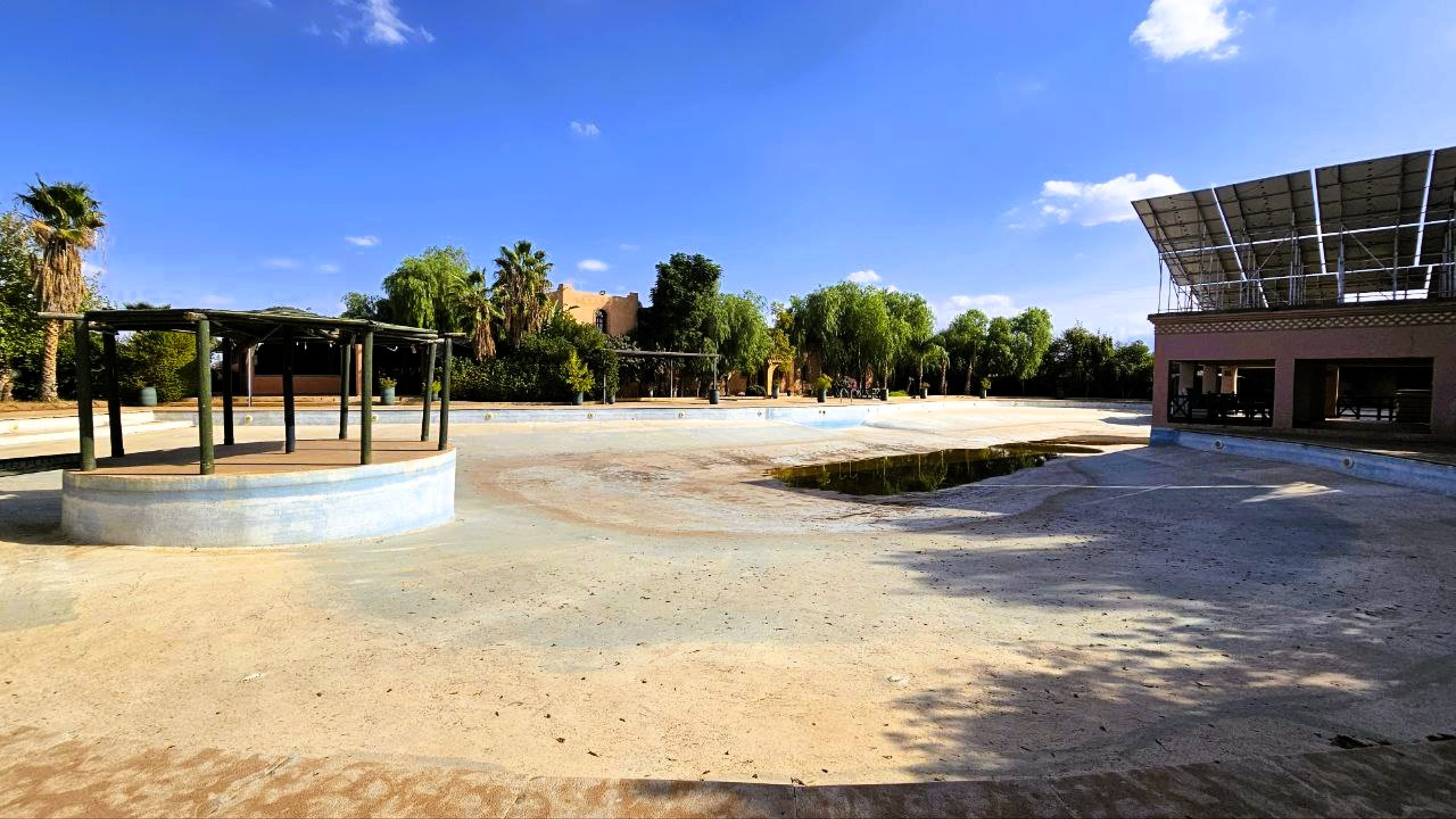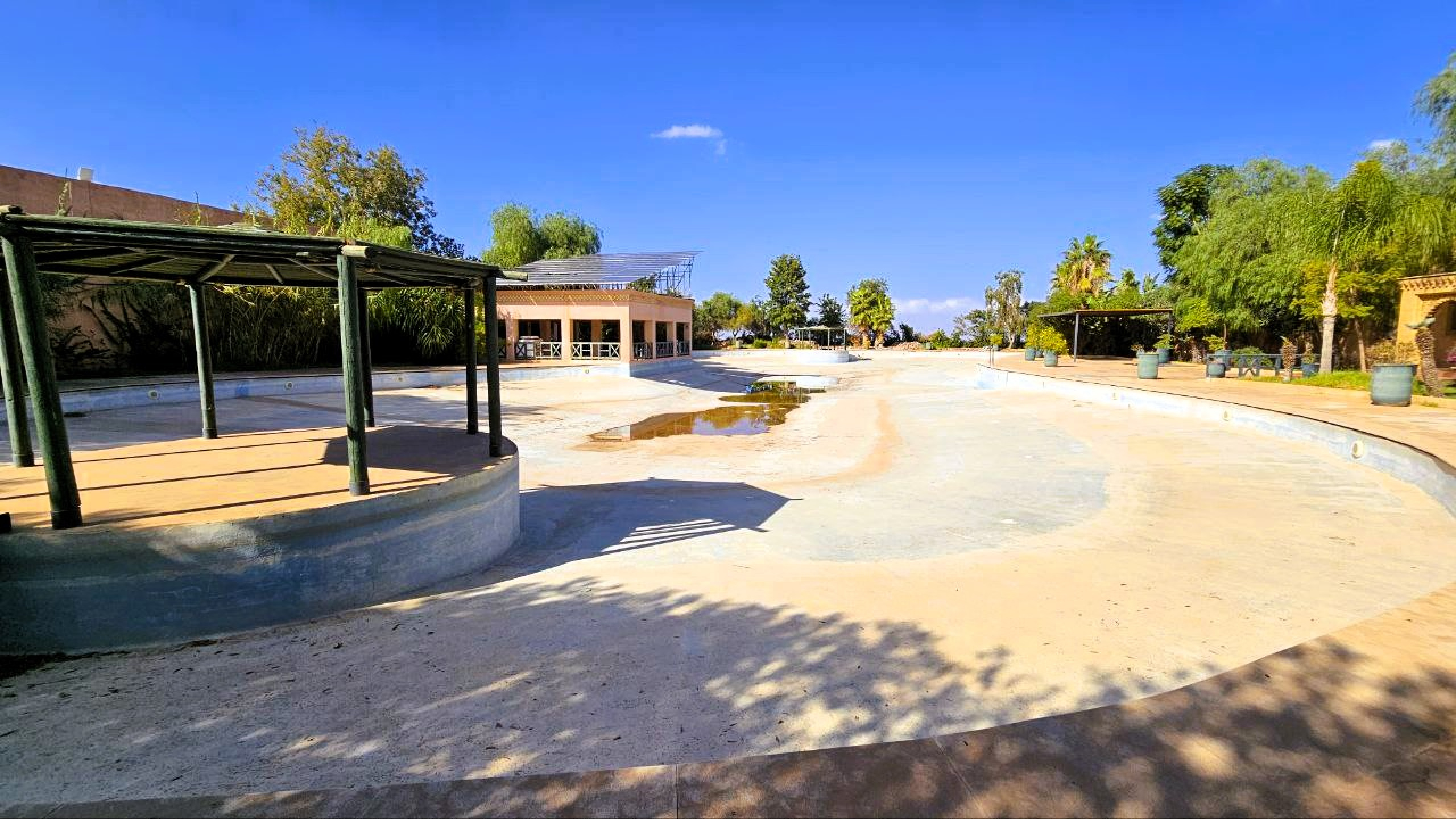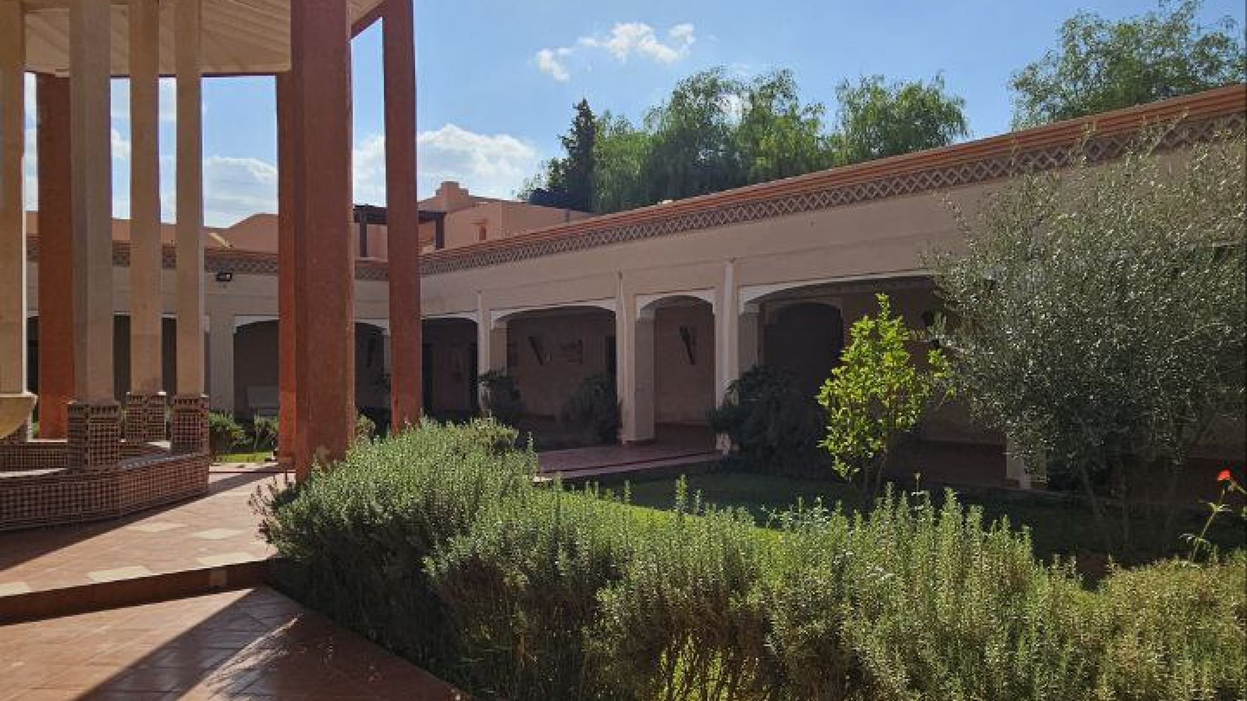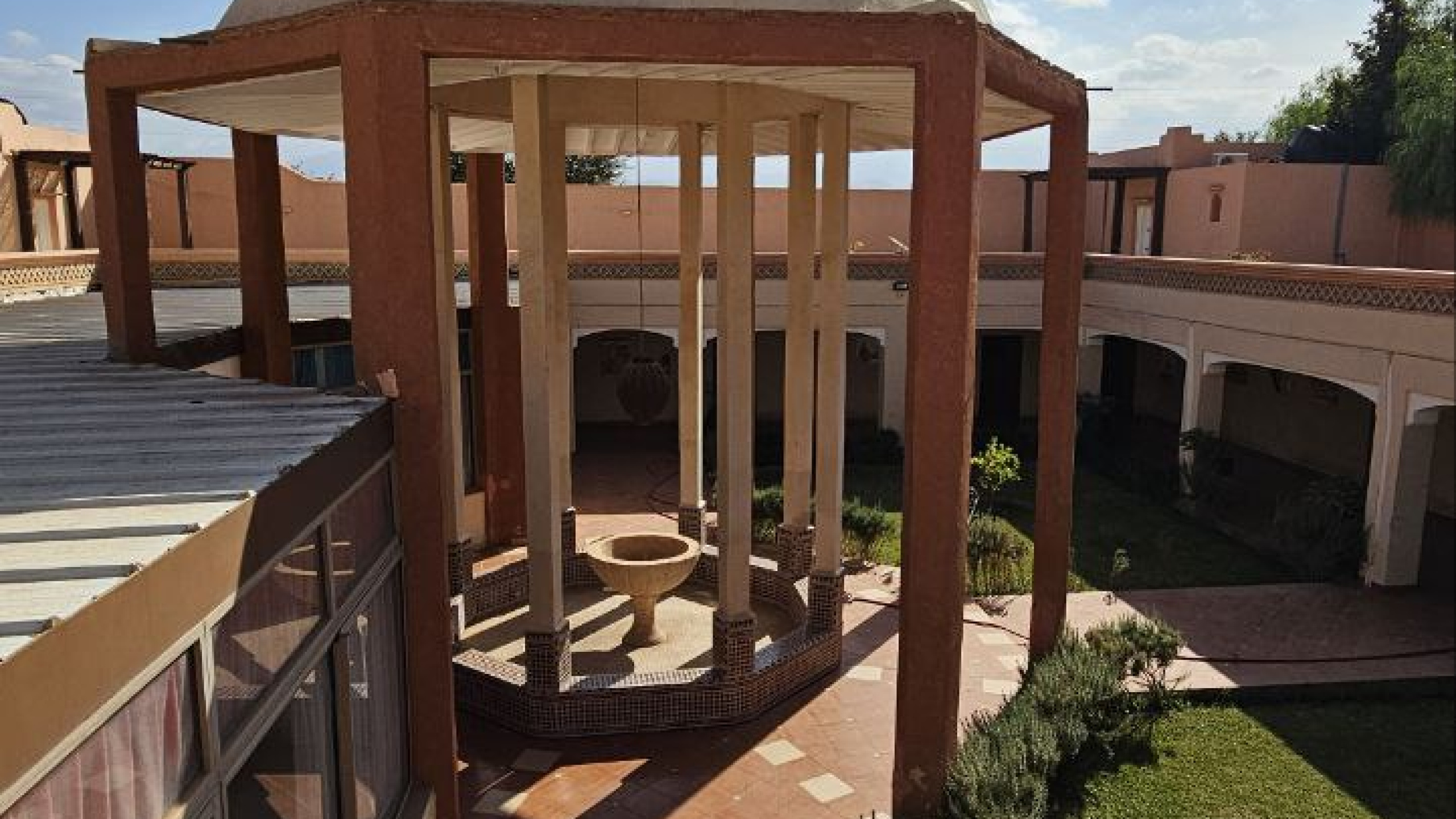 Architecture Imposante de 1000m2 typiquement inspirée des Kasbahs du Sud Maroc , agencée autour d’un patio central et ses jardins , ce complex touristique est à reprendre, à l’arrêt depuis quelques temps. Nécessitant un rafraîchissement et un second souffle.