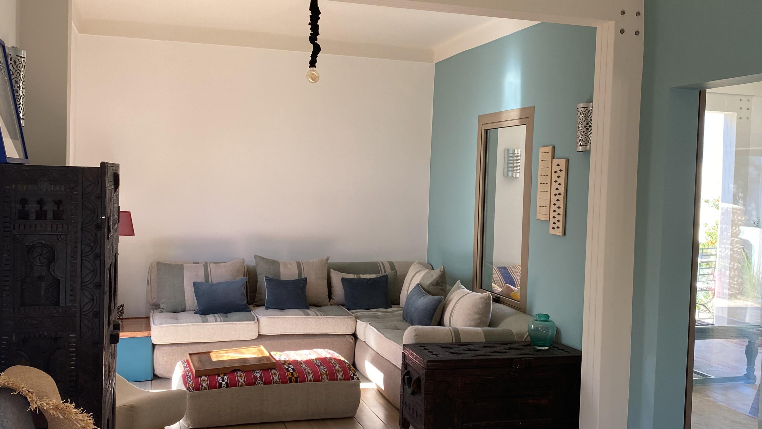 L’ espace à été pensé avec gout et soin et l’ensemble des matériaux et agencements sont de qualité. L’organisation des espaces est réfléchi pour répondre aux besoins d’une habitation contemporaine et un mode de vie typique d’Essaouira.